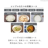 ◆白米コース、玄米コース、おかゆコース、炊き込みごはん、スープのシンプルな5つの炊飯コース。
